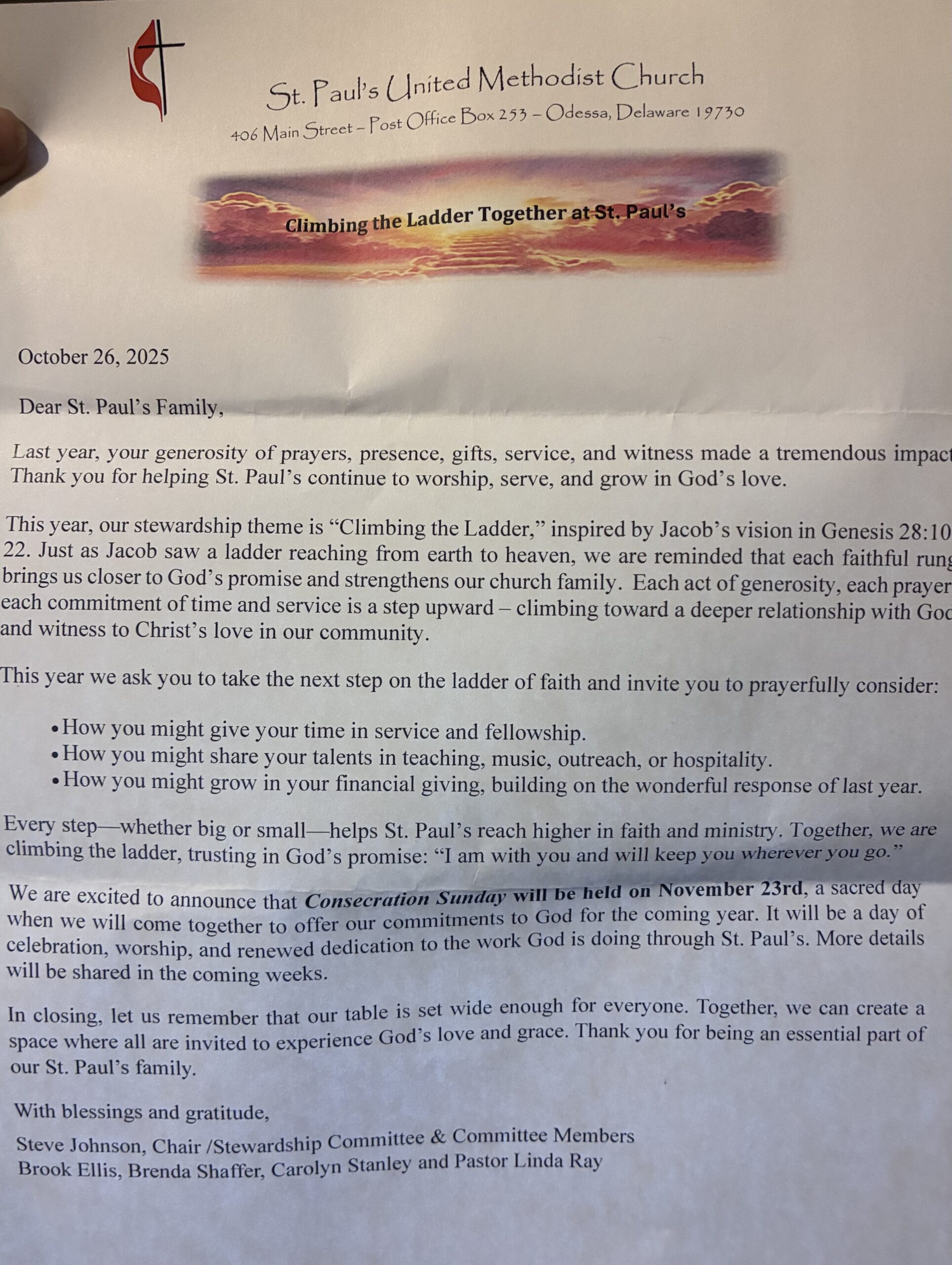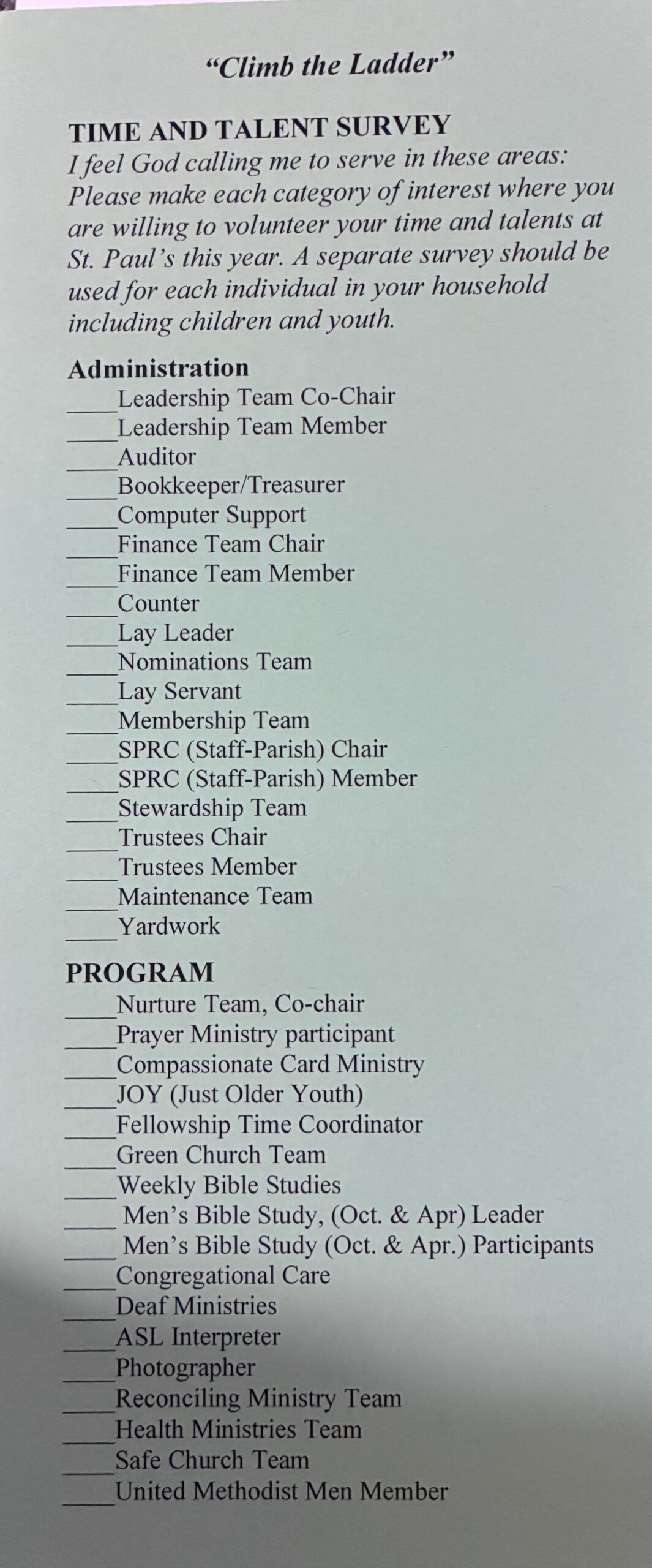 St. Paul’s UMC supports a ‘masks optional’ plan for in-person services, group meetings, and building use. It is still strongly encouraged that everyone checks for any illness symptoms before attending, use hand sanitizer and social distancing. Thank you to everyone for your continued consideration for others and care in keeping St. Paul’s UMC a vibrant congregation!